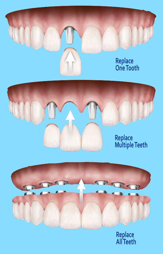 If you don’t replace your missing teeth, you’re at risk of losing more. Not only will your remaining teeth shift, causing gum problems and higher risk of further tooth loss, but you’ll also put more pressure on those remaining teeth and make them vulnerable to fracture. Dental implants are a great solution for missing teeth. You can use them to replace a single tooth or several, and they’ll help save your remaining natural teeth.